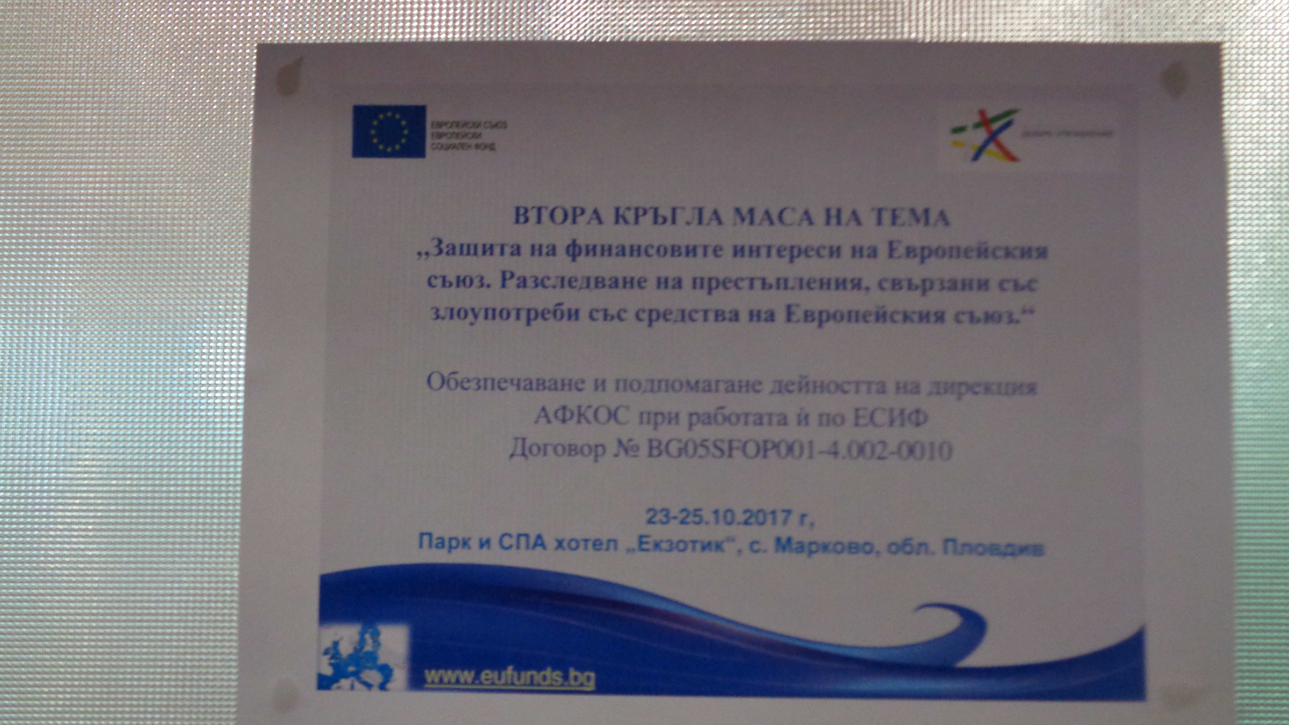 В периода 23 – 25 октомври 2017 г., в „Парк и СПА хотел „Екзотик“, с. Марково, обл. Пловдив, беше проведена втората кръгла маса на тема „Защита на финансовите интереси на Европейския съюз. Разследване на престъпления, свързани със злоупотреби със средства на Европейския съюз“. Участници в събитието бяха разследващи полицаи и оперативни работници от Областните дирекции на МВР в Южна България, от Главна дирекция „Борба с организираната престъпност“ и Главна дирекция „Национална полиция“, както и представители на три от Управляващите органи по ЕСИФ. Основната цел на събитието беше представянето на механизмите за борба с нередностите и измамите при усвояването на средства от бюджета на Европейския съюз, както и обсъждането и предлагането на мерки, насочени към предотвратяването на такъв тип престъпления.
